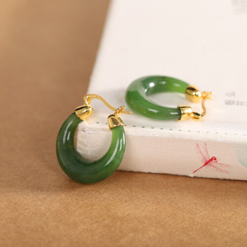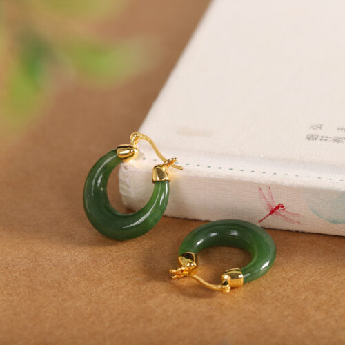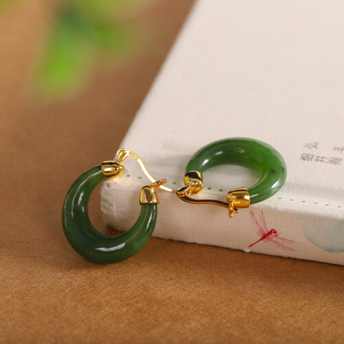 With a 2.1cm diameter, the classic hoop silhouette offers timeless appeal that transcends trends, making these earrings a versatile staple in your jewelry collection. Weighing approximately 5.6g, they deliver lightweight comfort for all-day wear — whether you’re dressing for a formal event or elevating a casual ensemble. The rich hue of genuine Hetian jade, paired with radiant gold-toned S925 silver, creates a look that’s both elegantly chic and effortlessly wearable.